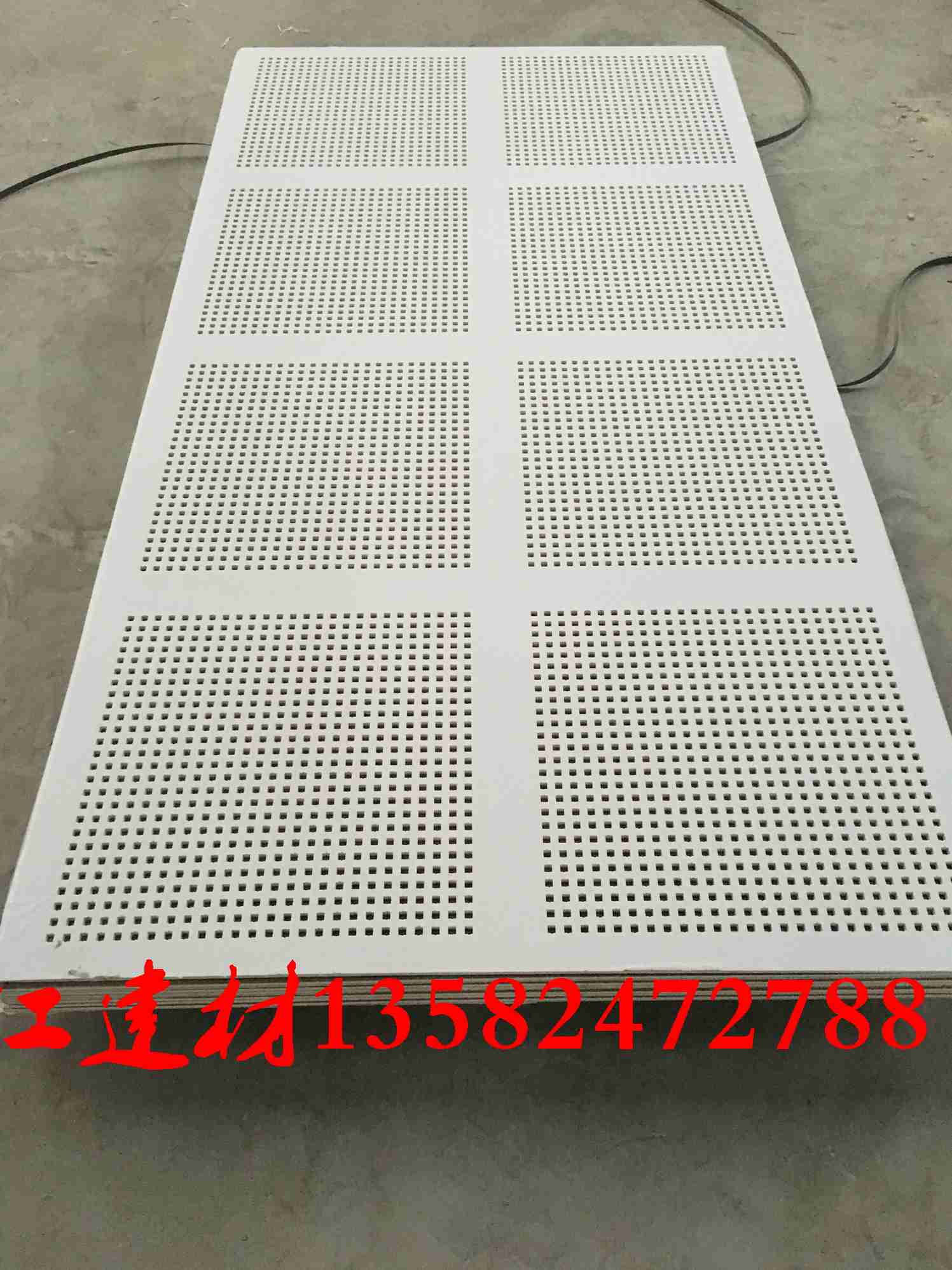 本厂专业生产厚度8mm穿孔石膏板/8.5mm穿孔石膏板/9mm穿孔石膏板/9.5mm穿孔石膏板/10mm穿孔石膏板/12mm穿孔石膏板产品尺寸:1200*2400、1200*2700、1200*3000mm,可定做其它尺寸石膏板穿孔后,石膏板上的小孔与石膏板自身及原建筑结构的面层形成了共振腔体,声音与穿孔石膏板发生作用后,圆孔处的空气柱产生强烈的共振,空气分子与石膏板孔壁剧烈摩擦,从而大量地消耗声音能量,进行吸声。这是穿孔纸面石膏板“亥姆霍兹共振”吸声的基本原理。穿孔纸面石膏板吸声对声音频率具有一定选择性,吸声频率特性曲线呈山峰形,当声音频率与共振频率接近时,吸声系数大;当声音频率远离共振频率时,吸声系数小。如果在纸面穿孔石膏板背覆一层桑皮纸或薄吸声毡时,空气分子在共振时的摩擦阻力增大,各个频率的吸声性能都将有明显提高,这就是人们常常在穿孔纸面石膏板后覆一层桑皮纸或薄吸声毡增加吸声的原因。