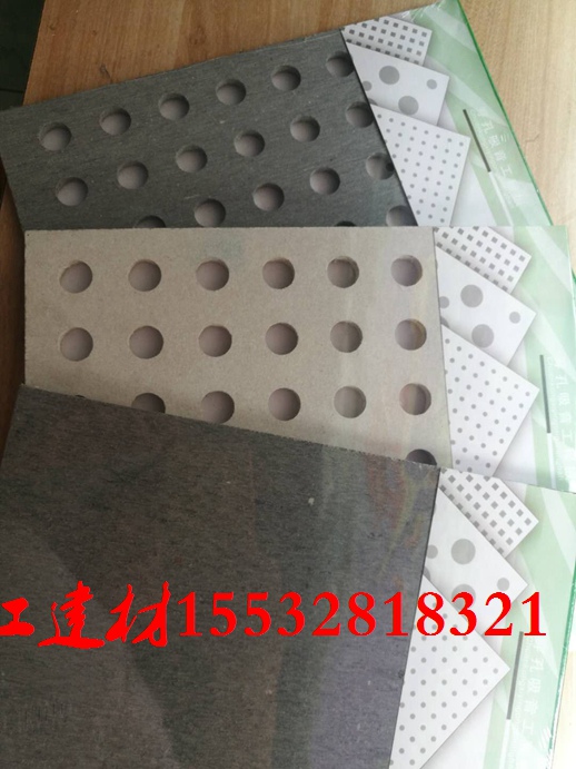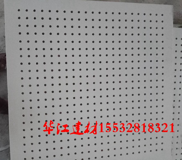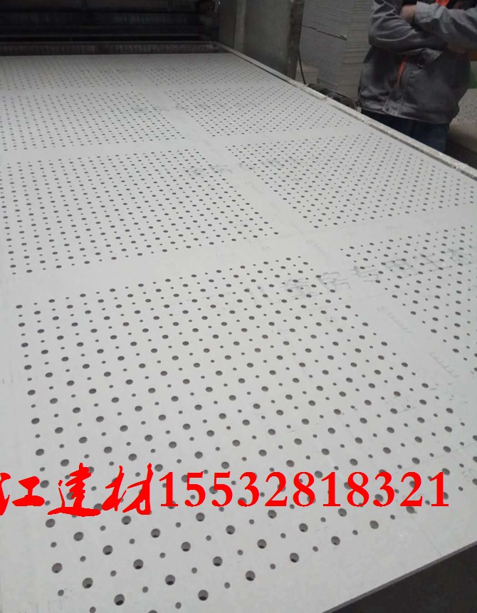 是由石膏加一层高级无纺布构成的,穿孔石膏板可以根据客户的想法制定孔的直径大小,1.2m*2.4m*9.5mm/12mm两种规格,大多为白色,防火A级,环保E1级。详询:155-3281-8321,任经理。