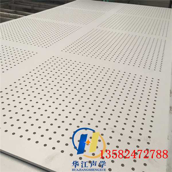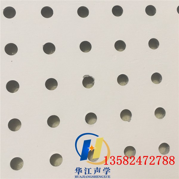 石膏板表面应平整,不得有污染、折裂、缺棱掉角、锤伤等缺陷,接缝应均匀一致(2)搁置安装的石膏板不得有漏、透、翘角现象(3)穿孔板的孔距应排整齐,穿孔应垂直干板面,桂边形状为直角形的板材,侧面应与板面成直角。(4)装饰石膏板正面不应有影响装饰效果的气孔、污痕、裂纹、缺角、色彩不均匀和图案不完整等缺陷(5)纸面石膏板面应平整,对于波纹、沟槽、污痕和划伤等缺陷,按规定方法检验时,应符合表4-3-12规定。 (6)吸声穿孔石膏板不应有影,向使用和装饰效果的缺陷,对以纸面石膏板为基板的板材不应有破损、划伤、污痕、凹凸、纸面剥落等缺陷;对以装饰石膏板为基板的板材不应有裂纹、污痕、气孔、缺角、色彩不匀等缺陷。暗装的吸声材料应有防散落措施。本厂专业生产厚度8mm穿孔石膏板/8.5mm穿孔石膏板/9mm穿孔石膏板/9.5mm穿孔石膏板/10mm穿孔石膏板/12mm穿孔石膏板产品尺寸:1200*2400、1200*2700、1200*3000mm,可定做其它尺寸石膏板穿孔后,石膏板上的小孔与石膏板自身及原建筑结构的面层形成了共振腔体,声音与穿孔石膏板发生作用后,圆孔处的空气柱产生强烈的共振,空气分子与石膏板孔壁剧烈摩擦,从而大量地消耗声音能量,进行吸声。这是穿孔纸面石膏板“亥姆霍兹共振”吸声的基本原理。穿孔纸面石膏板吸声对声音频率具有一定选择性,吸声频率特性曲线呈山峰形,当声音频率与共振频率接近时,吸声系数大;当声音频率远离共振频率时,吸声系数小。如果在纸面穿孔石膏板背覆一层桑皮纸或薄吸声毡时,空气分子在共振时的摩擦阻力增大,各个频率的吸声性能都将有明显提高,这就是人们常常在穿孔纸面石膏板后覆一层桑皮纸或薄吸声毡增加吸声的原因。