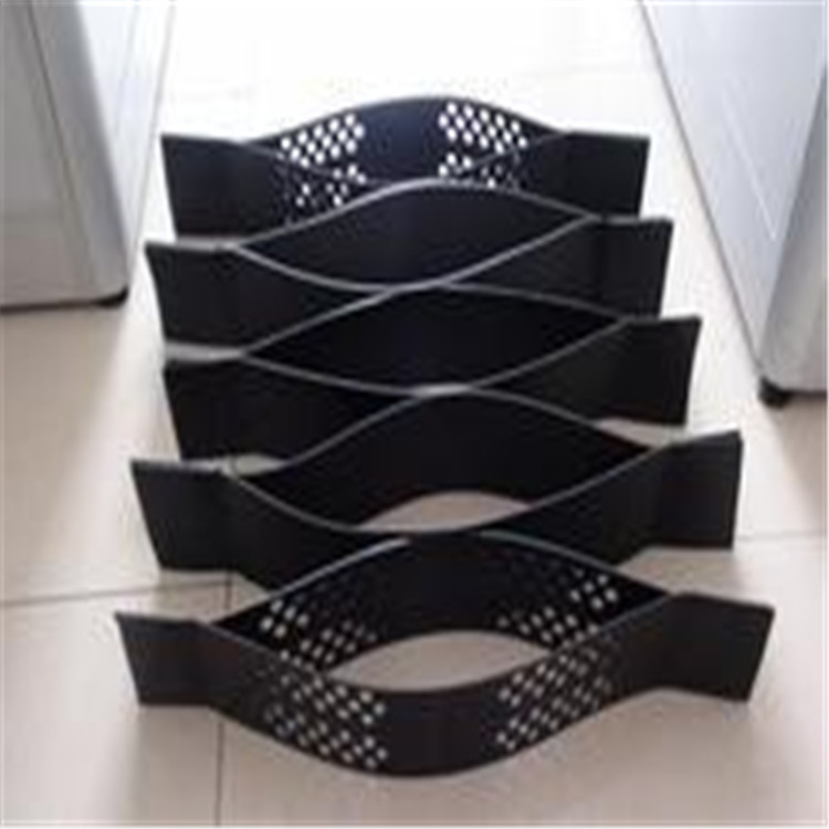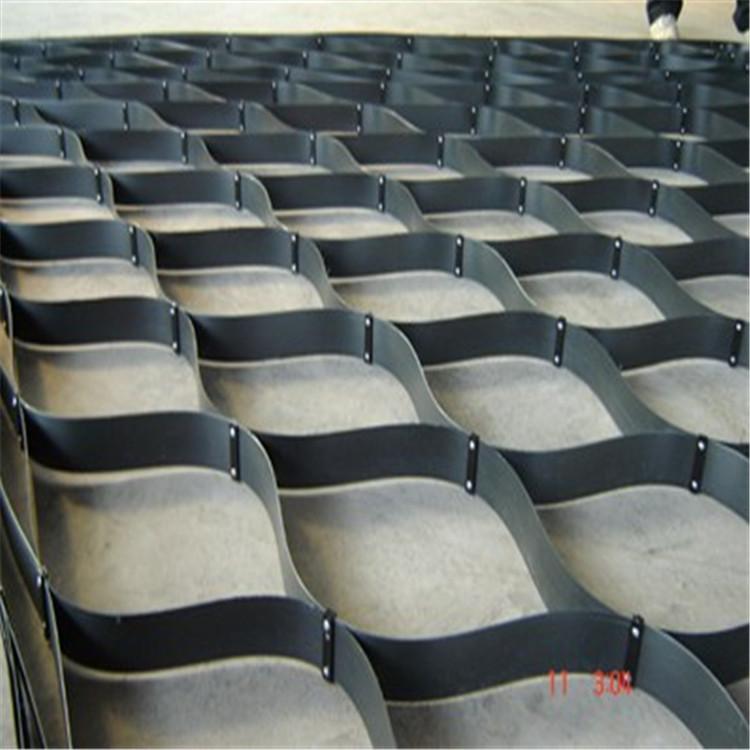 土工格室是由强化的PE、HDPE材料,经先进的超声波焊接机焊接而成的一种三维网状格室结构.土工格室具有材质轻、耐磨损,化学性能稳定、耐光氧老化、耐酸碱特点,适用于不同土壤与沙漠等土质条件。它伸缩自如,使用前紧密地叠合在一起,以便运输,使用时可人工拉开成网格状,就地取材填入沙子、碎石及泥土等松散物料形成一种组合材料,可获得较高的承载能力,构成具有强大侧向限制和刚度的结构体,并具有很强的抗冲蚀能力。