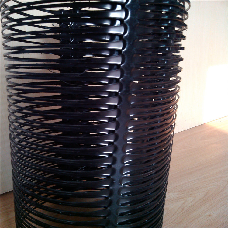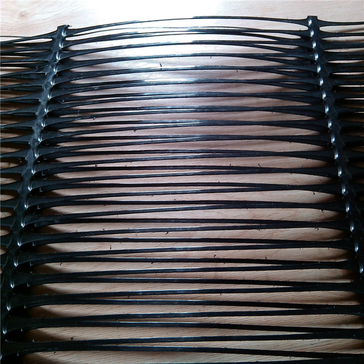 单向塑料土工格栅是指以高密度聚乙烯(HDPE)为原材料,经塑化挤压成板材,对板材进行规则冲孔,加热后纵向拉伸而成的土工格栅。这种过程中使高分子成定向线性状态并形成分布均匀、节点强度高的长椭圆形网状整体性结构。此种结构具有相当高的拉伸强度和拉伸模量,特别是我公司此类产品更具有超国际水平的高早期(伸长率在2%—5%)拉伸强度和拉伸模量。给土壤提供了理想的力的承担和扩散的连锁系统。该产品拉伸强度大(>150Mpa),适应各种土壤,是被广为采用的加筋加固材料。一般用于铺设在土壤中,通过格栅网孔与土体之间的咬合和互锁作用,构成了一个高效的应力传递机构,使局部载荷能迅速有效地扩散到大面积的土体中去,从而实现降低局部破坏应力,提高工程使用寿命之目的。