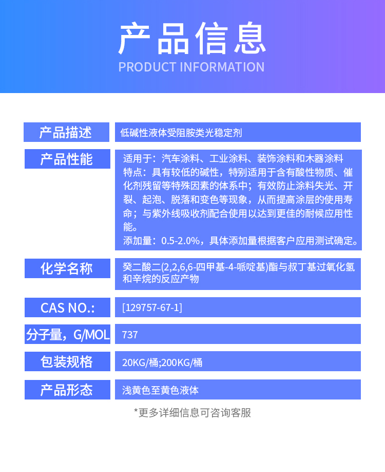 关键词:涂料光稳定剂;受阻胺类光稳定剂123;液体光稳定剂uv123;防变色抗UV剂;国产uv123