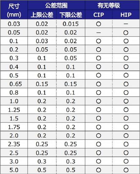 产品直径范围为0.03-5.0mm,且几乎所有尺寸都具有HIP级别的(压实化),用于研磨高硬质材料。